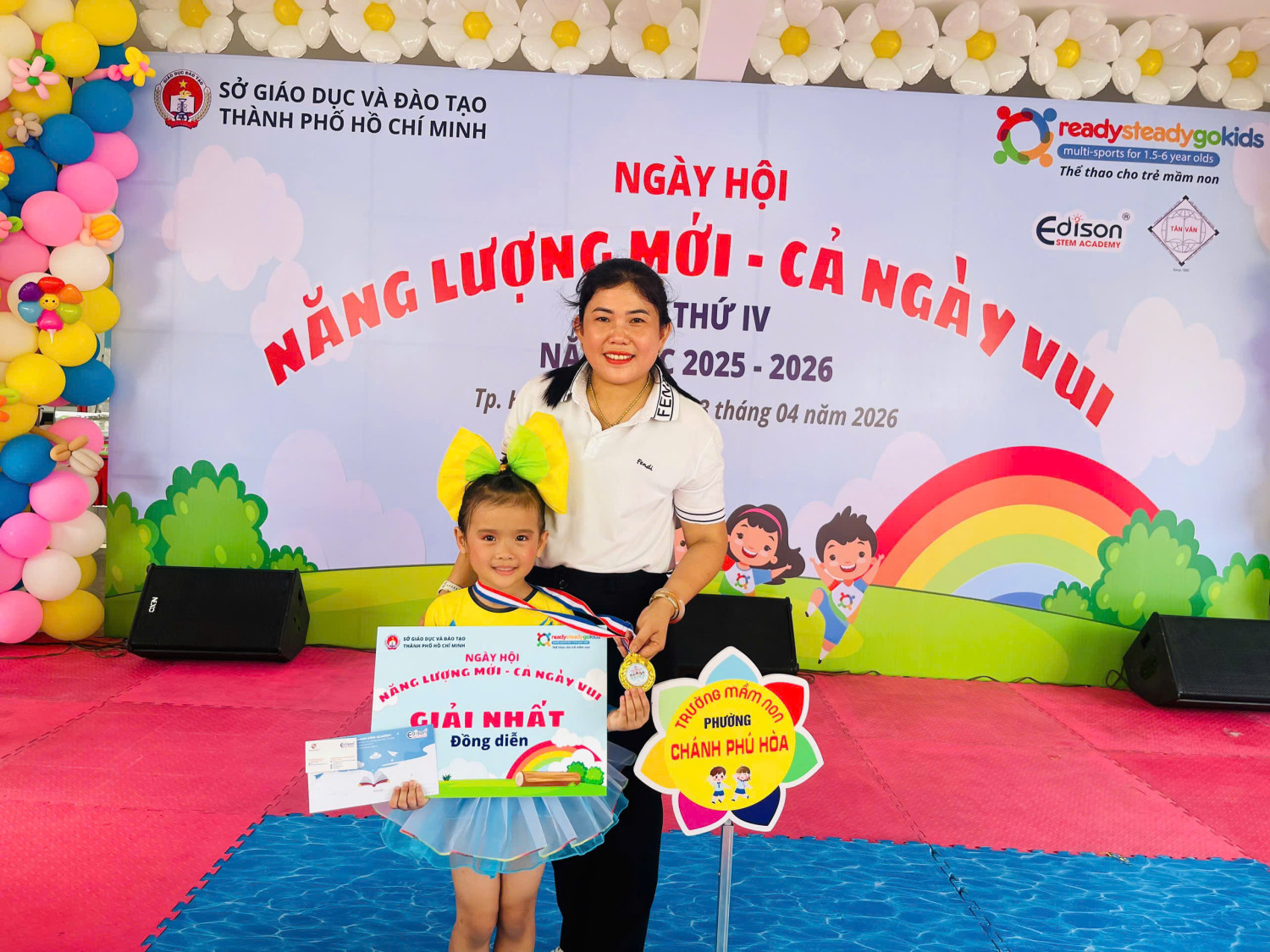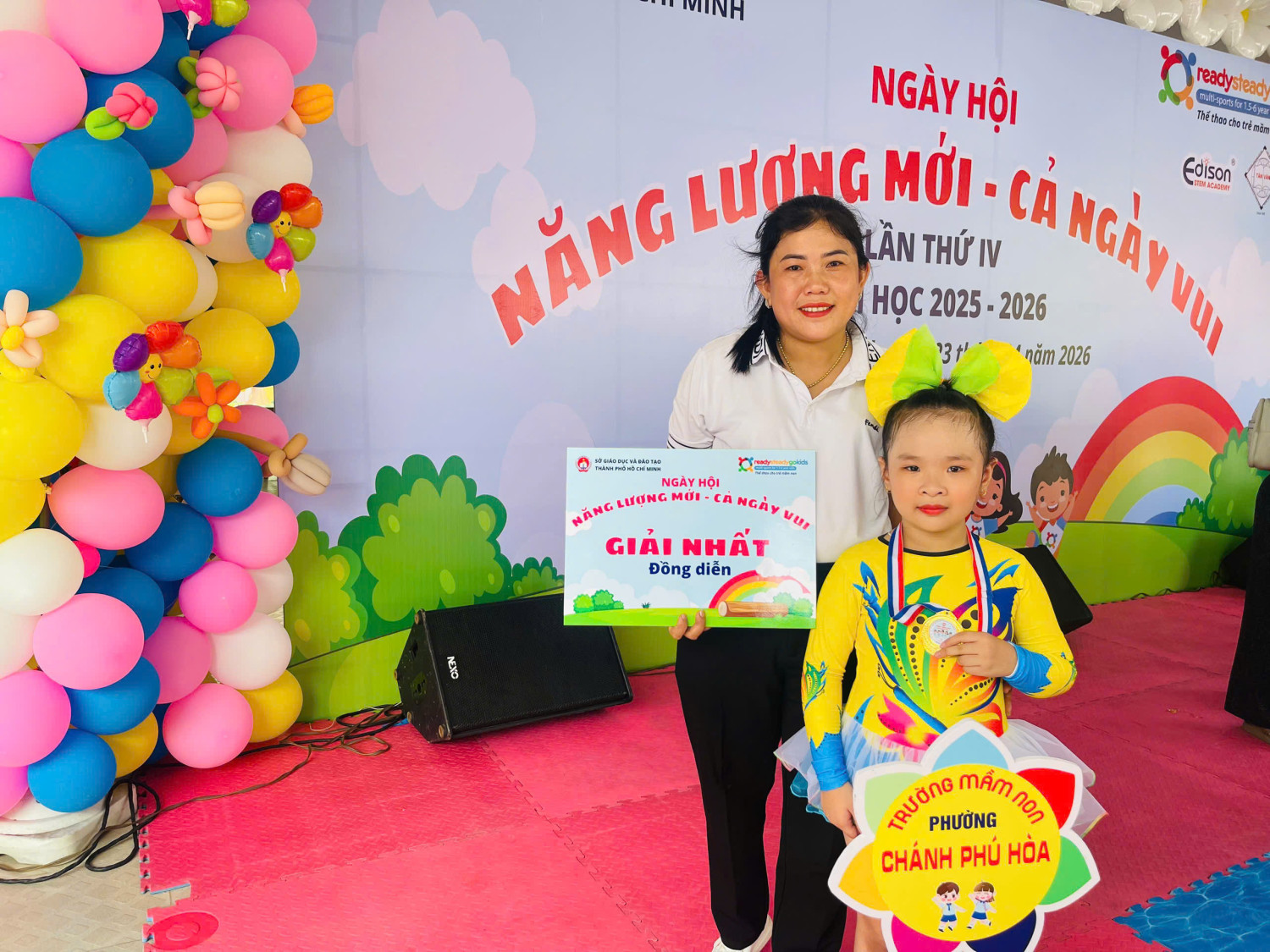 🎉 NGÀY HỘI “NĂNG LƯỢNG MỚI – CẢ NGÀY VUI” 🎉Trường Mầm non Chánh Phú Hòa tự hào khi tham gia Ngày hội “Năng lượng mới – Cả ngày vui” với thật nhiều niềm vui, tiếng cười và những khoảnh khắc đáng nhớ của các bé 💖🌟 Đặc biệt, trong phần thi đồng diễn, các bé của trường đã thể hiện sự tự tin, nhịp nhàng và đầy năng lượng, mang đến màn trình diễn vô cùng ấn tượng. Kết quả, đội thi đã xuất sắc đạt GIẢI NHẤT 🥇👏Đây là thành quả của sự cố gắng, luyện tập chăm chỉ của các con, cùng với sự tận tâm hướng dẫn của các cô giáo và sự đồng hành quý báu từ phụ huynh.💐 Nhà trường xin chúc mừng các bé và gửi lời cảm ơn chân thành đến tất cả những người đã góp phần tạo nên thành công này. Hy vọng rằng các con sẽ luôn vui khỏe, tự tin và tiếp tục tỏa sáng trong nhiều hoạt động bổ ích tiếp theo!#MamNonChanhPhuHoa #NangLuongMoiCaNgayVui #GiaiNhatDongDien #TuHao